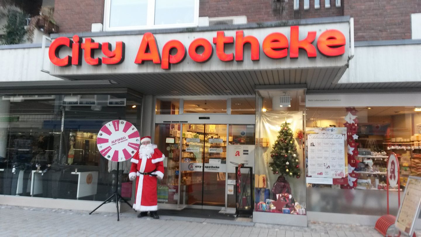 Am 06.12.16 war Clown Alfonso zu Gast als Nikolaus mit seinem Glücksrad vor der City Apotheke in Herten. Er brachte am heutigen Nikolaustag groß und klein sehr viel Freude mit kleinen Geschenken und kleinen Preisen an seinem Glücksrad - auch das Wetter spielte mit. Ein großes Dankeschön an das gesamte Team der City Apotheke in Herten.